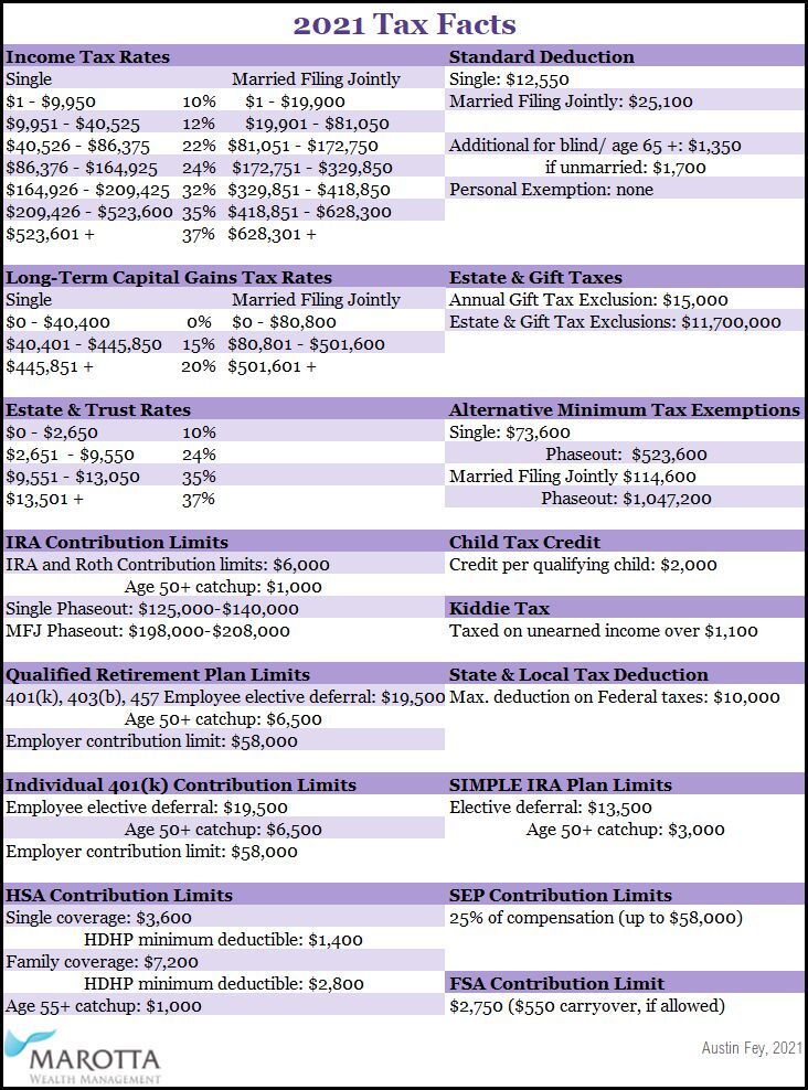 To plan ahead, it’s helpful to know what the tax brackets and other limits are this year. Here is a reference chart with income tax rates, capital gains rates, retirement contribution limits, and more. Hopefully having all the information in one place will be as helpful for you as it is for me!