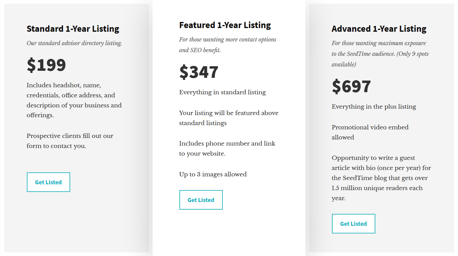 On the next page that loads, it quickly becomes clear what kind of directory this is as they list the following pricing structure: