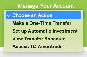 Once that new account is established, you will be able to transfer funds over to the investment side. From the “Manage Investments” page, you can set up one-time or recurring transfers.