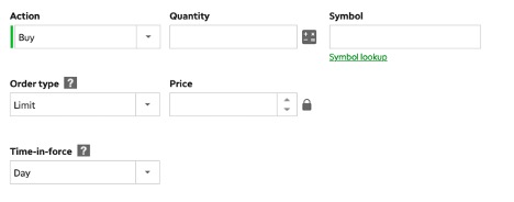 To trade in the account, click “Trade” in the top menu, and then select “Stock & ETFs.” From there, you can place orders for the investments in our gone-fishing portfolio one at a time.