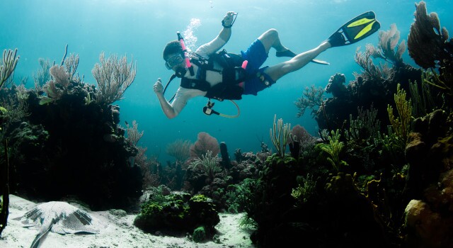 Photo by Libby Horbaly of her brother, Sam, scuba diving in the Bahamas.
