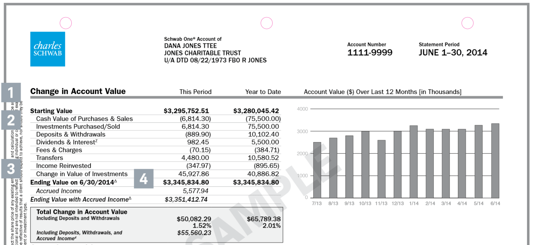 What’s the difference between Schwab’s “Ending Value” line and their “Ending Value with Accrued Income” line on my monthly statements?