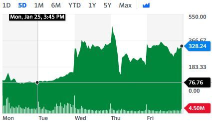 Here is the 5-day chart (January 25-30, 2021) of GME: