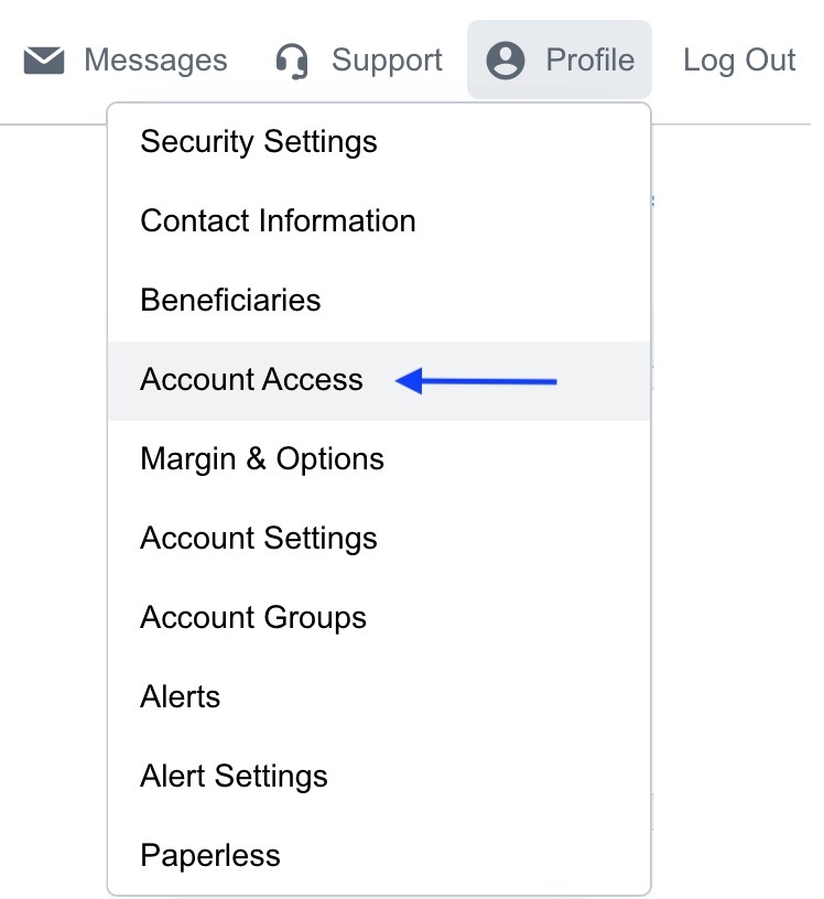 After logging in to Schwab Alliance at https://www.schwab.com, click on the person icon in the top right corner and select “Account Access”.