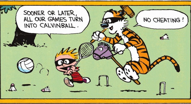 Tucked deep in a blanket fort, my brother and I used to love reading Calvin and Hobbes together. Several of those comic strip jokes made it into my family’s regular conversations from that. The one most often used is “Calvinball.”